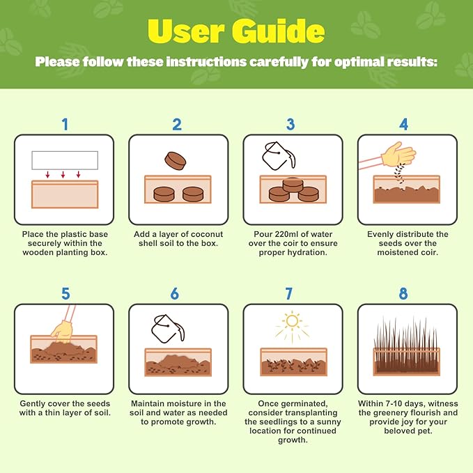 • ⏳ Fast & Easy to Grow – Sprouts in Days!: Simply hydrate the soil, plant the seeds, and watch sprouts appear in 3–7 days! Our high-germination seeds grow lush grass (up to 4–6”) within 1–2 weeks—purrfect for impatient kitties!