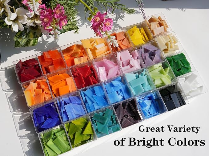 • BUILT TO LAST, INDOORS & OUTDOORS: These mosaic tiles are made from durable stained glass sheets, perfect for both interior and exterior use, including water environments. The colors are vibrant and designed to resist fading, ensuring your mosaic projects maintain their brilliance for years to come