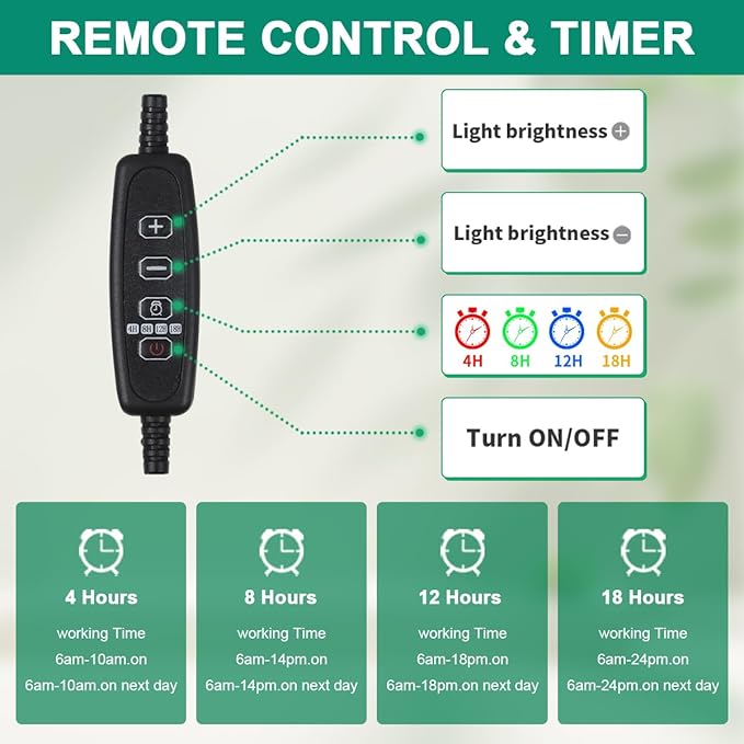 • LED Grow Light Included: Each tray contains an LED light for illuminating the seedlings to promote growth. Also the light has a controller with multiple settings that you can set the timer and brightness.It is a great helper for starting seeds indoors.