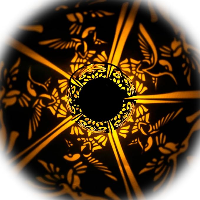 • ✔️【Gorgeous & imaginative Garden Decor】 - Fusion the retro gold, copper of exteriors and irregular pattern inside, at darkness, the solar lantern casting a bright, warm light with hummingbird pattern, which looks like a hummingbird flying symbolizes freedom and eternal.
