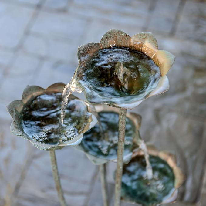 • LONG-LASTING METAL CONSTRUCTION: Crafted from high-quality metal, this sculptural fountain is built to withstand the elements, ensuring long-lasting beauty in any environment. Its freestanding design allows for flexibility in placement, making it an excellent choice for both indoor and outdoor settings. The flower tiered fountain elegantly blends artistry with functionality, enhancing your landscape.