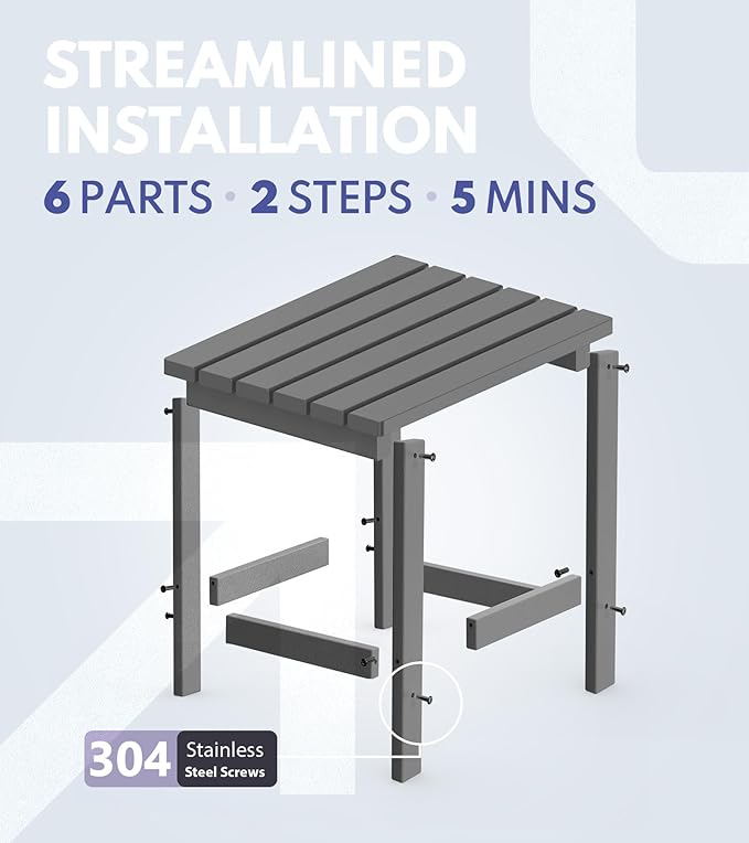 • 【Easy to Assemble & Easy Maintenance】The outdoor side tables for patio is easy to assemble with clear instructions and necessary hardware. The installation is effortless, safe, stable, and will not easily fall off. The small outdoor table requires no painting, staining, waterproofing, or similar maintenance. You can clean easily with soap, water, a soft-bristle brush or sanding sponge.