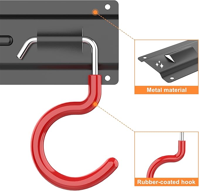 • Durable and Lightweight Design: Made from sturdy yet lightweight metal with rubber-coated hooks to prevent scratches, this tool hanger holds up to 96 lbs (6 lbs per hook), making it perfect for heavy-duty tools