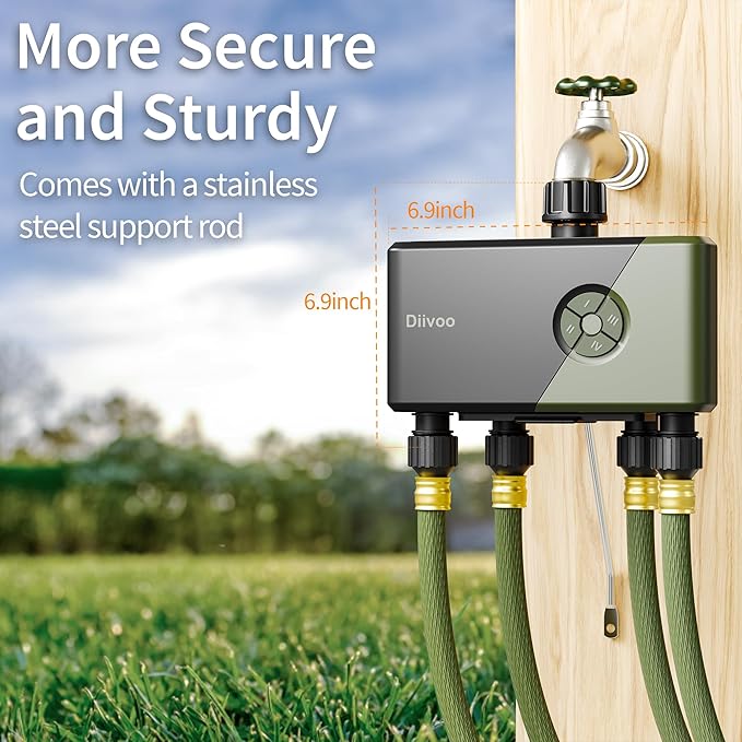 Diivoo Smart Garden Watering System, WiFi Timer with 4 Outlets Compatible with Alexa, 24 Custom Irrigation Plans, Rain Delay Function, and Dual Watering Modes for Lawns & Yards
