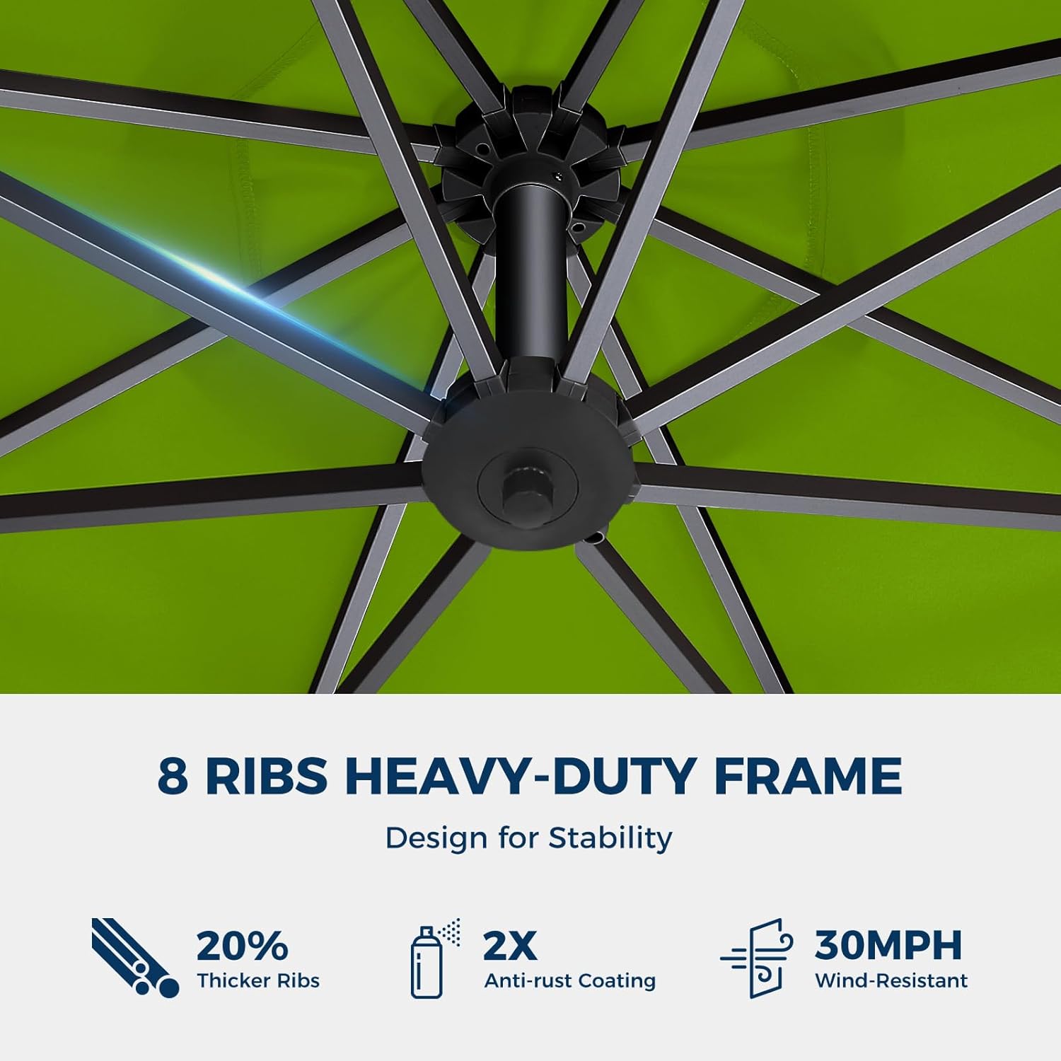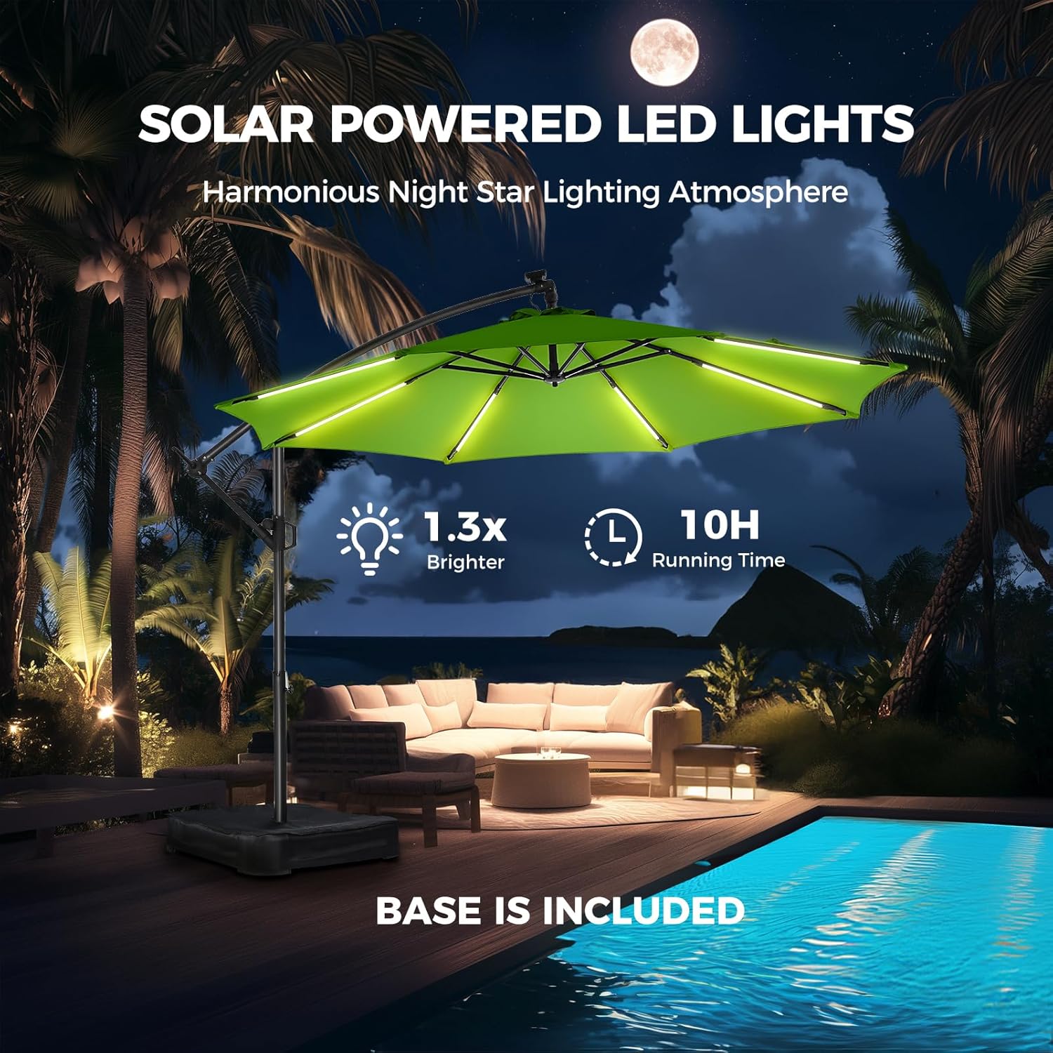 HOMSHADE 10ft Solar Lights Offset Cantilever Patio Umbrella - with Light and Base, LED Lighted Offset Hanging Patio Outdoor Market Umbrella UPF50+ UV Protection with Easy Tilt and Crank (Green)