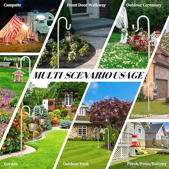 • Versatile Use: This shepard pole isn’t just for bird feeders; it’s also perfect for hanging flower baskets, wind chimes, and solar lights, making it a multipurpose addition to any garden or yard