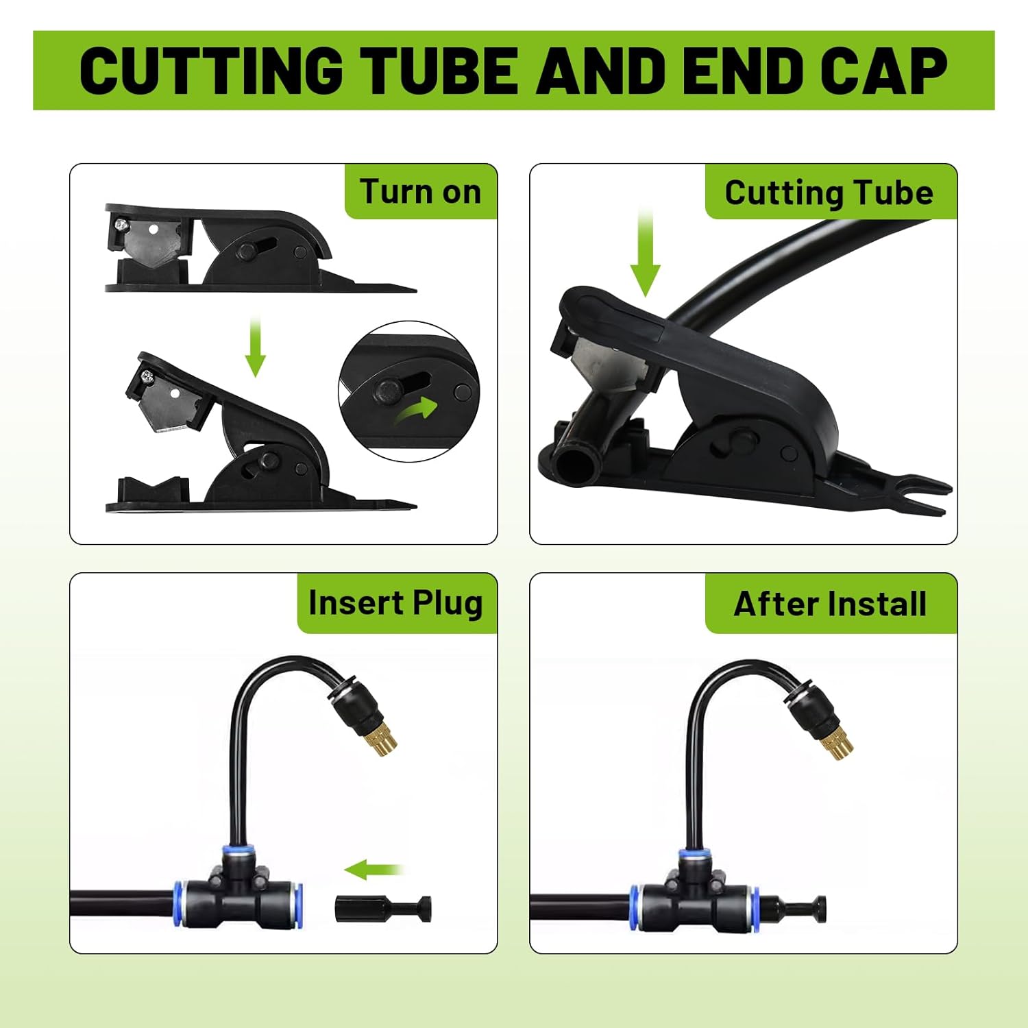• Durable Black Water Pipe, Long-lasting and Efficient: Our garden watering system is equipped with a 100-foot sturdy and durable black water pipe, specifically designed for outdoor use. This water pipe is made of advanced anti-aging materials and has excellent anti-oxidation properties. It can effectively withstand high temperatures and extreme cold, and will not deform or break even in harsh environments. Whether it is for irrigating a large lawn or carefully tending to flower plantings, this durable water pipe can ensure a reliable water flow supply to meet all your drip irrigation needs.