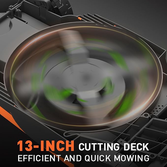 • Brushless Motor-This electric lawn mower features brushless motor with low noise and low vibration. It not only provides powerful power, but also avoids wear on the motor from carbon brushes, thus making the battery mower last longer and lower maintenance cost.