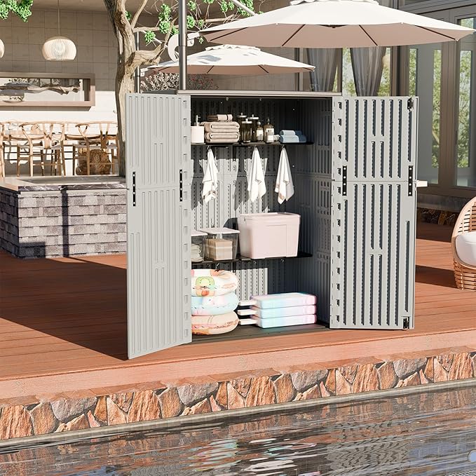 • 【Multi scenario application】This cabinet can be used both indoors and outdoors, providing you with the most convenient, safe, and reliable storage space whether placed on the balcony, garden, doorstep, or by the pool. Due to the double reinforcement of the material, its durability is greatly improved, and it is generally not a problem to use for 10 years.