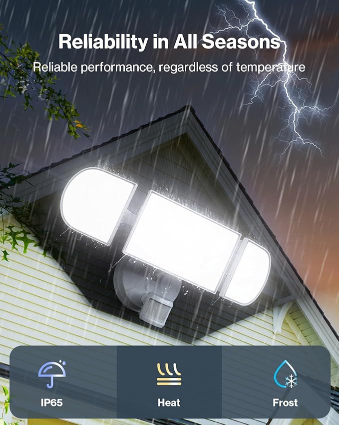 • Built to Last: With an IP65 waterproof rating, these motion detected lights withstand any weather – rain, snow, extreme temperatures, ensuring reliable performance year-round.