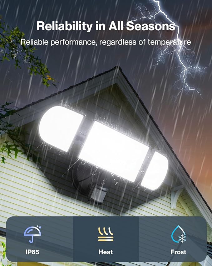 • Built to Last: With an IP65 waterproof rating, these motion detected lights withstand any weather – rain, snow, extreme temperatures, ensuring reliable performance year-round.