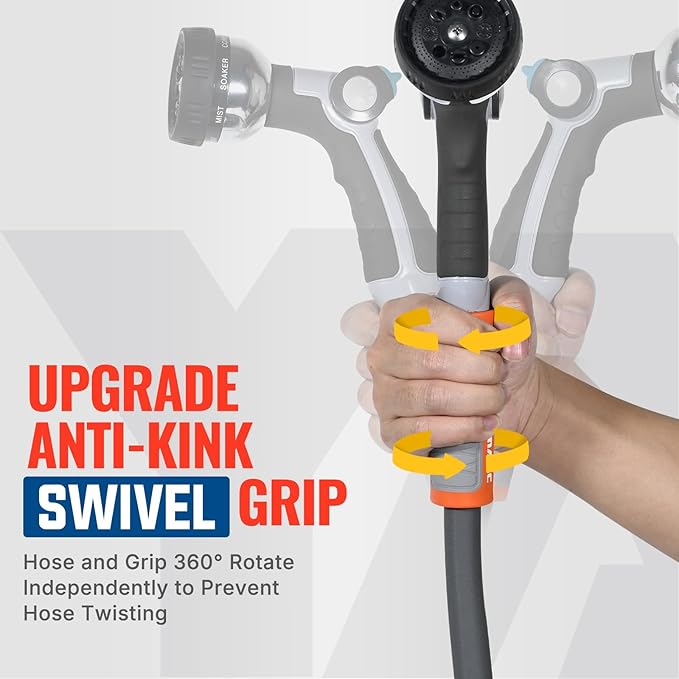 • Industry Swivel Handle: The hose features an industrial technology upgraded 360-degree swivel fitting, enhancing your experience of kink resistance. The ergonomic design of the swivel handle makes it easier to connect to the faucet.