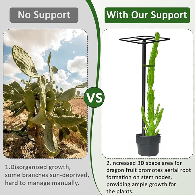 • Indispensable for Garden Lovers: This distinctive and functional dragon fruit stand is a practical addition to any garden. It offers vital growth support for a range of plants, including dragon fruit and cacti, making it an excellent choice for passionate gardeners