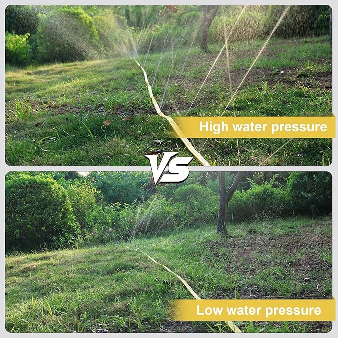 • Innovative Three-Tube Design for Efficient Watering: Featuring a unique three-tube construction and multi-directional holes, this sprinkler hose provides a spray range of 3 to 8 feet for each holes. With operating pressure between 20-65 PSI, it ensures consistent water delivery while conserving water—perfect for small gardens, large lawns, or even sprinkler irrigation system setups.