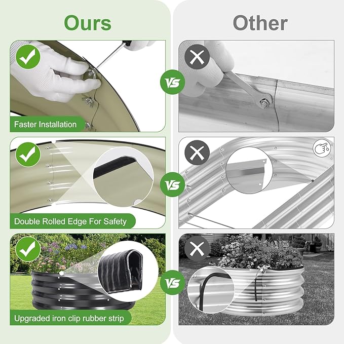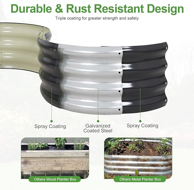• 【Upgrade Quality & Structure 】The raised garden bed is made of thick galvanized metal with a surface spray coating, which is rust proof and anti-corrosion. Can be used for a long time. The Round design ensures uniform surface force and prevents deformation. More durable than other raised planter box, becoming a good helper for your garden