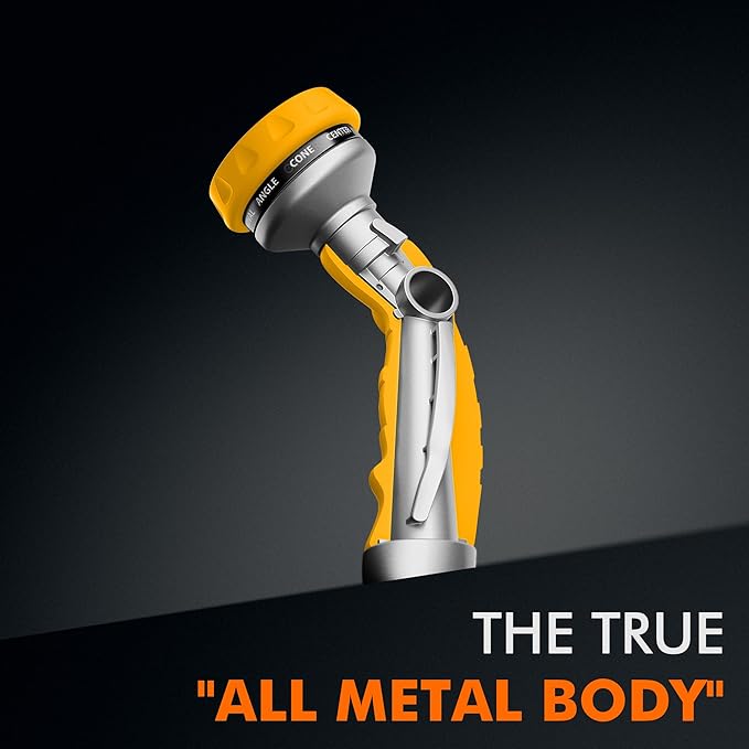 • 【Heavy Duty Metal Hose Nozzle】Constructed with premium zinc-alloy material, this hose nozzle sprayer is solid & strong to resist daily drops and shocks. The bronze powder painting, TPU coating and rubberized bezel dial can enhance durability & flexibility and withstand hard impacts & heavy force. A long-lasting garden hose nozzle you can count on many years.