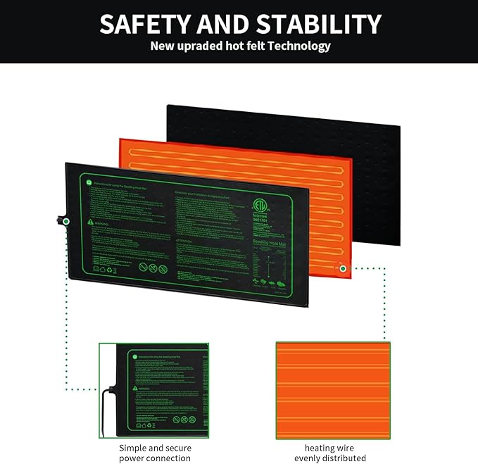 • Durable & Waterproof - This heat mat is made with waterproof, flexible and long-lasting material and SPT-2 5.9ft safety power cord. Easy to clean and maintain