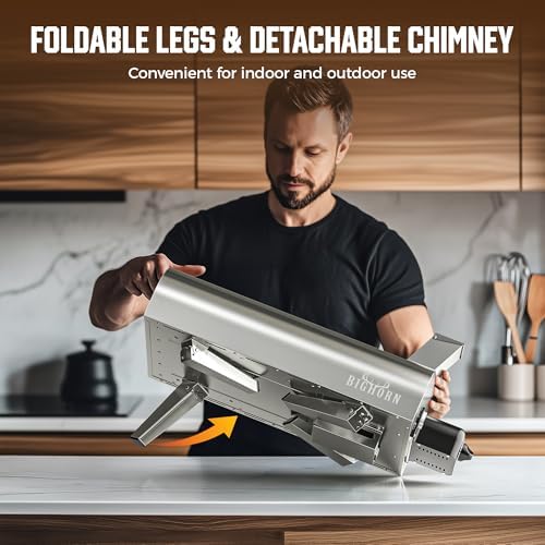• Solid Pizza Oven: Crafted from durable stainless steel, this pellet pizza oven features a wooden door handle, an upgraded pellet hopper for easy refueling, and a 12-inch pizza stone included for perfect cooking results, all with foldable legs and simple assembly for added convenience