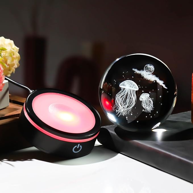 • Great Home Decor: The crystal jellyfish ball is an eye-catching home decoration, perfect for display on a table, wall shelf, fireplace, or desk, with a multi-color lamp base, it can be used as a decorative accent during the day, and it will shine under the light emitted by the bracket at night, adding warmth to the space and can be used as a cozy night light