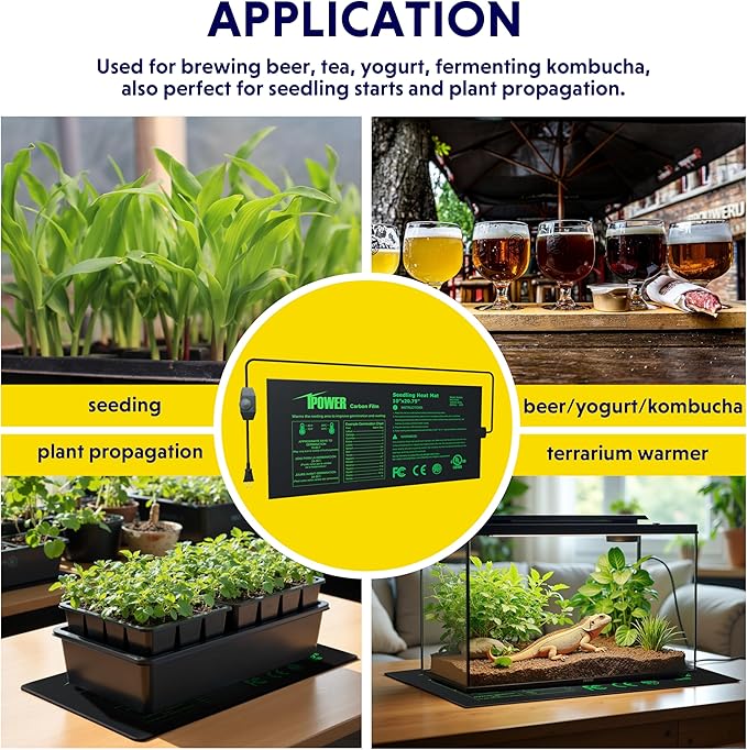 • Variety of uses: works perfect for indoor seedling starts and plant propagation, provides constant temperature to improve vegetable, plant, herb, and flower seed germination. Also can use to brewing beer, tea, yogurt or fermenting kombucha