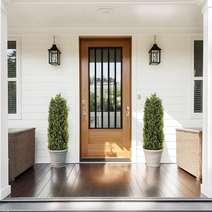 • UV-Resistant & Weatherproof: Designed as durable faux plants outdoor, these artificial topiary for outdoors withstand sunlight, rain, and wind, keeping their vibrant green color year-round