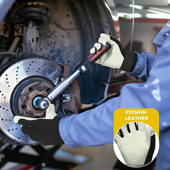 • Premium Quality Materials & Design: Crafted from 100% pigskin leather and 100% spandex, these leather work gloves offer superior puncture, heat, and cut resistance, along with exceptional flexibility and comfort. Both materials are highly breathable, preventing hand sweat during long work hours
