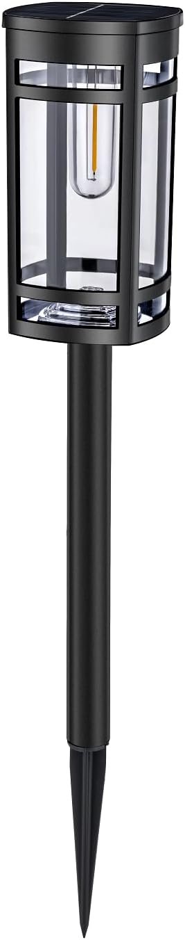 • CONTEMPORARY STYLED: Line borders, paths and driveways in your garden and around your home with contemporary stake lights, for decoration and function night after night; Each light has a vintage-style filament LED bulb that emits a beautiful soft glow; Their black finish not only adds a touch of elegance but also ensures resilience against the elements, promising enduring style and performance