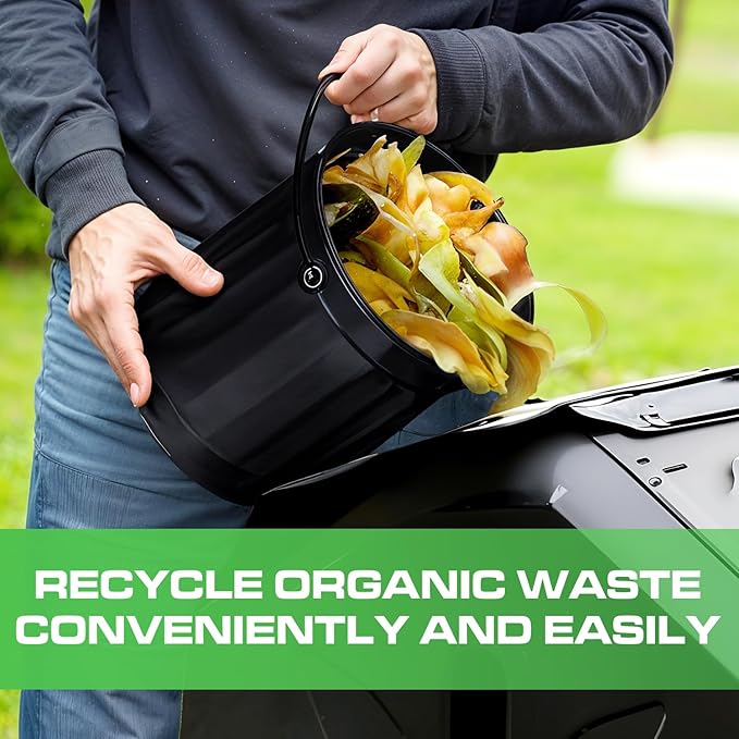 • Kitchen Compost Bin: Our compost bucket, indoor compost bin kitchen odorless has an attractive black finish that adds a pop of color to your kitchen countertop. Compact and sleek this food scraps bin for kitchen with charcoal filter, fitting seamlessly into most kitchen spaces.