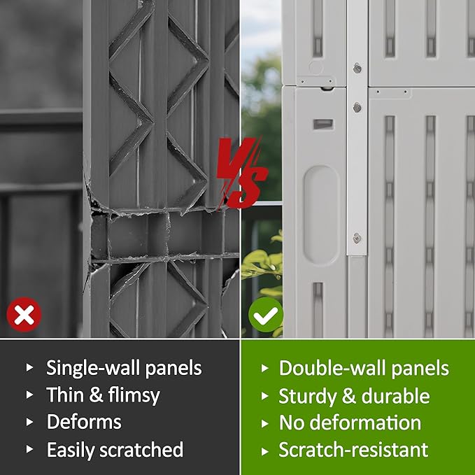 • Double Panels: The shed outdoor storage features double panels that won't easily bend or puncture