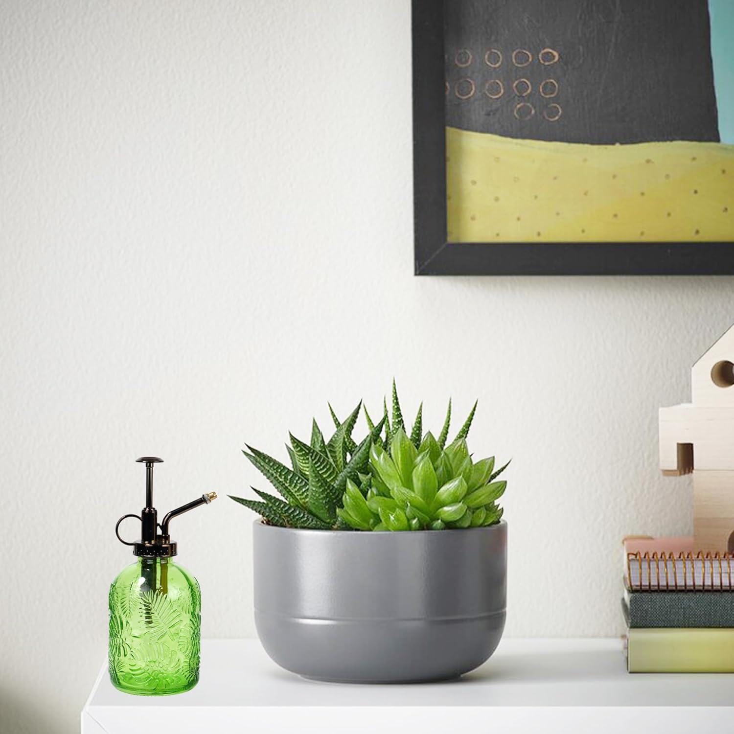 • Beautifully designed:This watering can features a leaf-patterned glass body and a bronze-colored plastic one-handed pump at the top that sprays a mist of water for watering plants to dispense a precise amount of water!