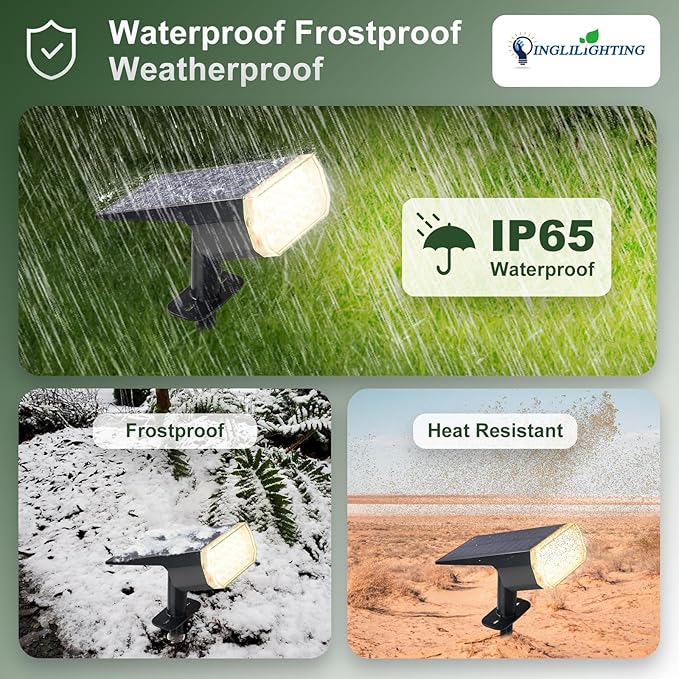 • 4.Outdoor Lights Say Goodbye to Complicated Wiring:Solar Powered Spotlight are easy to install and require no additional power sources, just plug and play. Whether it's para, stakes, or decks, you can easily create your ideal outdoor space."Dont live up to every beautiful moment.Enjoy life .”