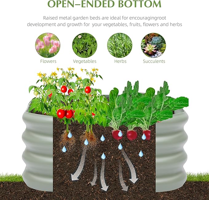 • LARGE CAPACITY: 12-inch deep raised garden bed holds up to 4 cubic feet of soil, perfect for growing deep-rooted plants and vegetables