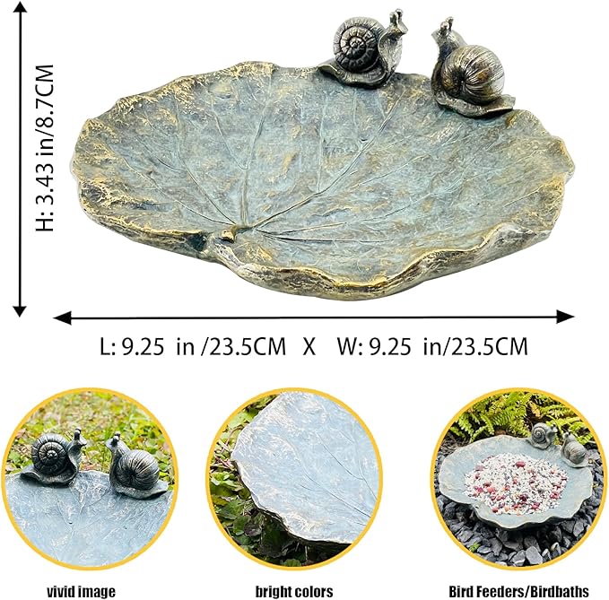 Bird Baths for Outdoors, Wild Birdfeeder, Antique Outdoor Garden Resin Birdbath Bowl for Outside Yard Table Decor (Snail Bird Feeder)