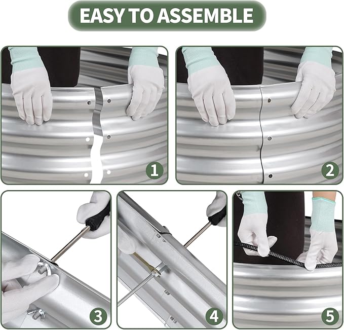 • 【High-Quality Materials & Durable】 Made from 0.5mm galvanized metal panels with double-layer anti-corrosion galvanization, this outdoor raised garden bed features a robust oval-shaped design for added strength and durability. Resistant to rust and corrosion, it provides a long-lasting gardening solution that can be reused for many years, ensuring a sustainable and reliable space for your plants to thrive.