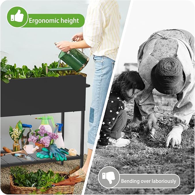 • 【Ergonomically Designed】: Standing at 31.5 inches off the ground, the outdoor garden bed ensures that you can tend to your plants comfortably without bending over, reducing strain on your back and knees. Gardening has never been easier or more enjoyable