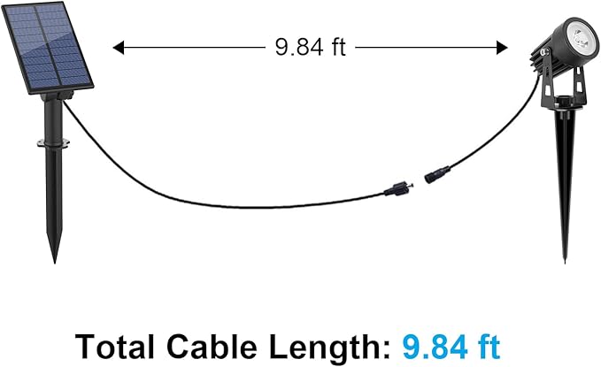 • 【2 installation methods】The solar panel and light can be installed in the ground or mounted on the wall with included screws. Each ground light with 118inch/3m cable, 270° Adjustable freely up or down to meet different requirements