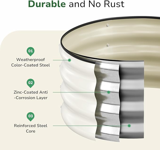 • 【Built to Last with Premium Protection】 Crafted from heavy-duty metal with triple-layer defense—galvanized steel, rust-proof coating, and weather-resistant finish—this bed withstands extreme heat, rain, and soil contact for years. No more replacing flimsy planters every season