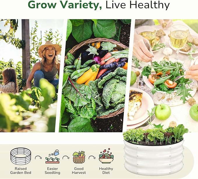 • 【Smart Space-Saver】 GreatBuddy 2x2x1 ft Raised Garden Bed designed for eco-conscious urbanites and fresh-food-loving families. Its crisp white finish effortlessly blends into any outdoor setting—modern patios, rustic balconies, or lush backyard corners. Arrange multiple round galvanized raised garden beds to create modular green zones that boost curb appeal while optimizing your gardening space