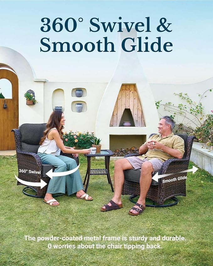 • Smooth 360° Swivel & Glide: Enjoy smooth 360° rotation and gentle rocking for hours of effortless relaxation with this chair. Whether you're sipping tea at sunset, enjoying quiet moments alone, or gathered with friends and elderly loved ones for weekend chats—creating a warm, inviting space for meaningful connections anytime