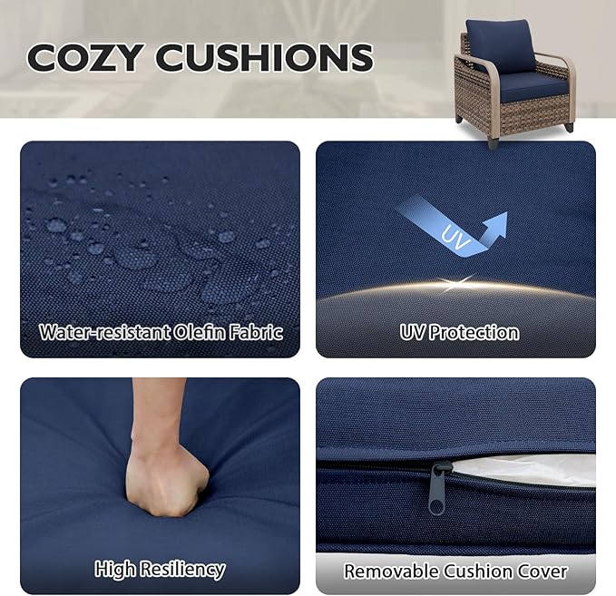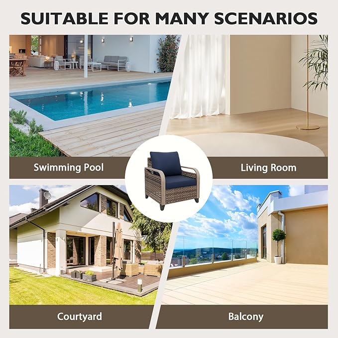 • GATHER, RELAX, ENJOY: This wicker armchair has generously widened seats and plush 5-inch back cushions for ultimate comfort. Designed for outdoor living, it's made with UV protection and weather resistance materials, making this furniture the ideal choice for stylish, worry-free lounging.