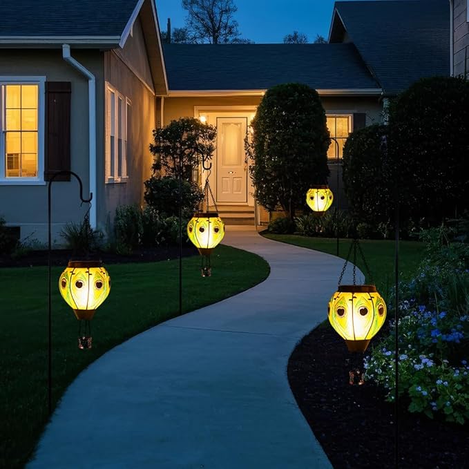 • 【Hanging Solar Light with Flickering Flame】The glass hot air balloon solar lantern with metal "S" hooks can be easily hung anywhere, such as balconies, porches, ledges or trees. The bright hot air balloon decorations during the day can add color to your outdoor space, and at night to add a warm and romantic atmosphere to your homeland.