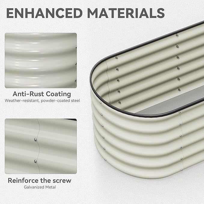 • Improved Material: Made of strong steel panels in a smooth oval shape, the raised planter bed ensures safety; Features rubber strips for added safety when using