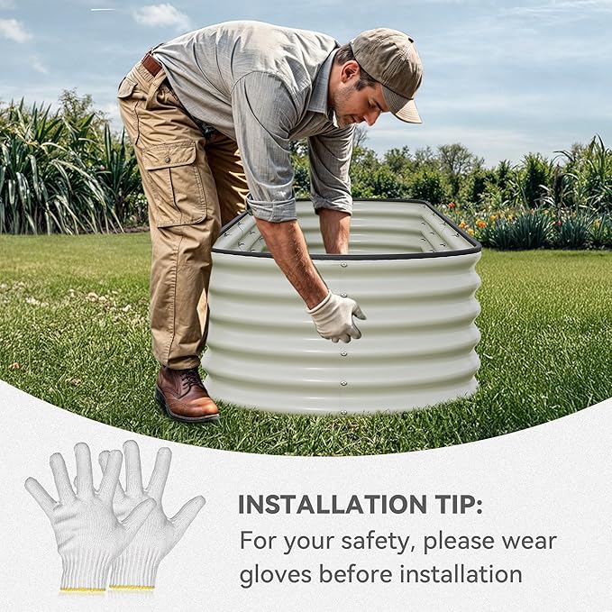 • Straightforward Setup: With our instructional guide, assembly of the raised flower bed can be completed in 15-30 minutes; We provide 1 pair of gloves for your safety, so please wear them before installation