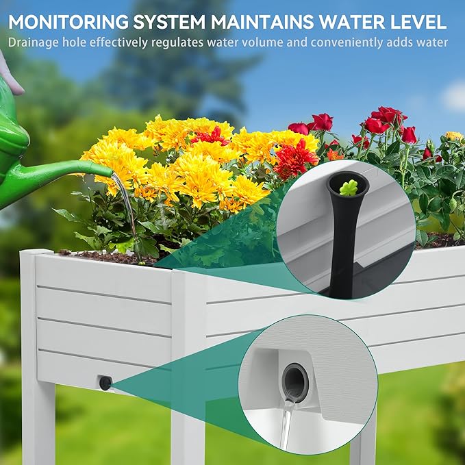 • Effortless Water Management: Our elevated garden bed features a central divider for effective soil separation and a float system for precise water level monitoring; Side drainage holes ensure optimal moisture control