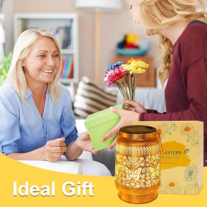Solar Lanterns Outdoor Garden Decor Butterfly Hanging Lantern Lights, Birthday Gifts for Women Mom Grandma Waterproof Metal Solar Lights LED Decoration with Shepherd Hook for Garden Yard Patio Porch