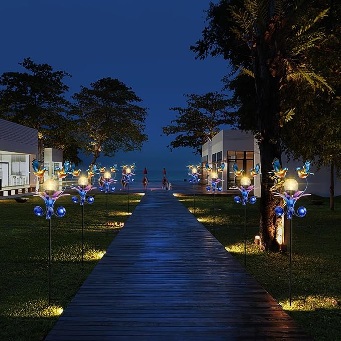 • Easy to Install - Simple assembly structure without extra screws, wiring or external electricity required. Just stick the bluebird garden stake into the soil, turn it on using the solar panel's power button, then enjoy your garden ornament as it softly glows automatically from dusk