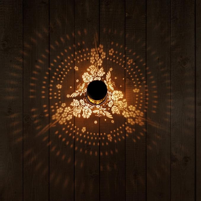 • 【Exquisite Garden Decoration】 - The hummingbird solar lantern projects distinctive patterns in dim surroundings, creating a magnificent and cozy atmosphere. It injects vitality and fun into your garden, luring family and friends.With its unique hollow-out design and elegant antique bronze hue, it has an artistic touch, making it perfect for decorating gardens, backyards, secluded corners, outdoor areas, and walkways