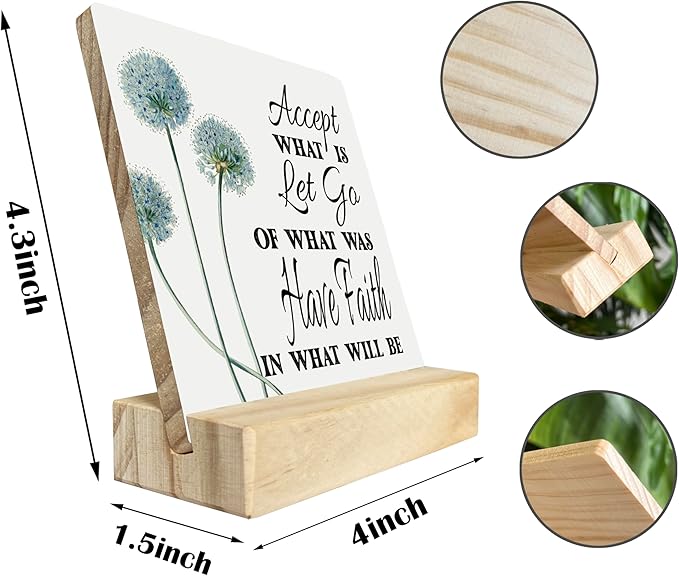 • Material and Dimension: The display board is made of sturdy MDF and comes with a wooden stand made of high quality pine wood; with emotional text and beautiful graphics, the plaque is tasteless, durable and long-lasting, not easy to fade and crack. Wooden sign 4 x 4.3 inches, the size is fit in your palm, easy to carry.