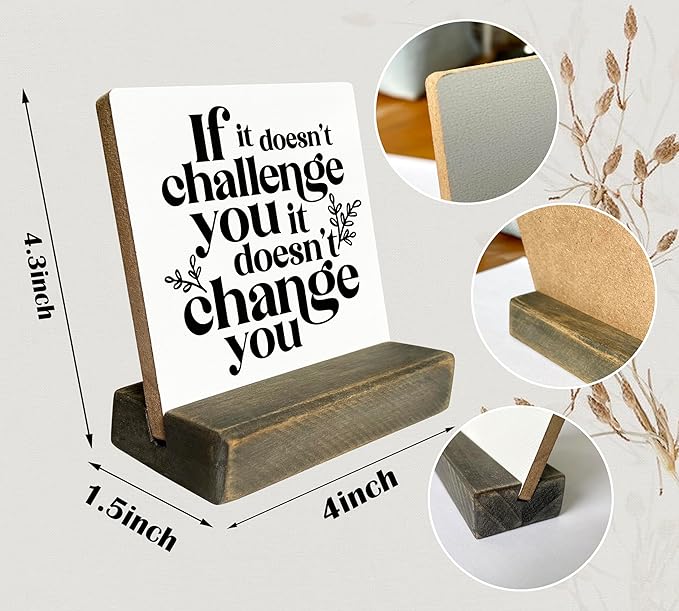 Inspirational Wooden Sign, If It Doesn't Challenge You It Won't Change You, Desk Plaque with Wooden Stand 4 x 4.3 inches, Classroom Decor, Decor for Home Gym, Gift for Young Teens Graduates A