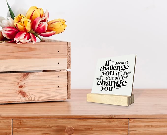 Inspirational Wooden Sign, If It Doesn't Challenge You It Won't Change You, Desk Plaque with Wooden Stand 4 x 4.3 inches, Classroom Decor, Decor for Home Gym, Gift for Young Teens Graduates B